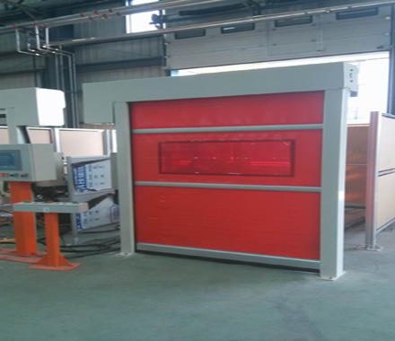 高(gāo)速門安(ān)全配(pèi)置:標準紅外線光電保護,安全氣囊(náng),警示燈,防撞柱,停電手動搖杆。